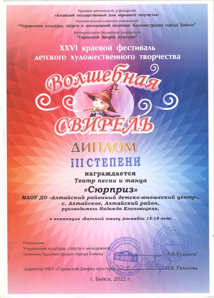 Дипломы 2021 - 2022 учебный год