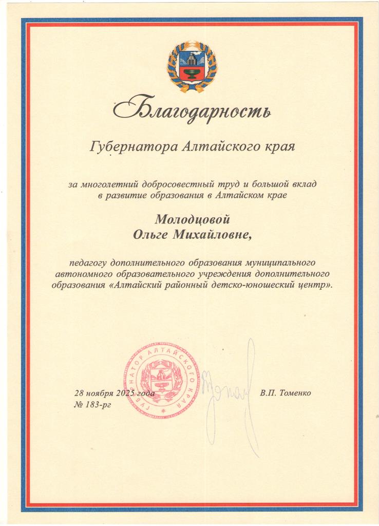 Грамота Администрация Алтайского района 001 Почётная грамота благодарность губернатора 2025 001