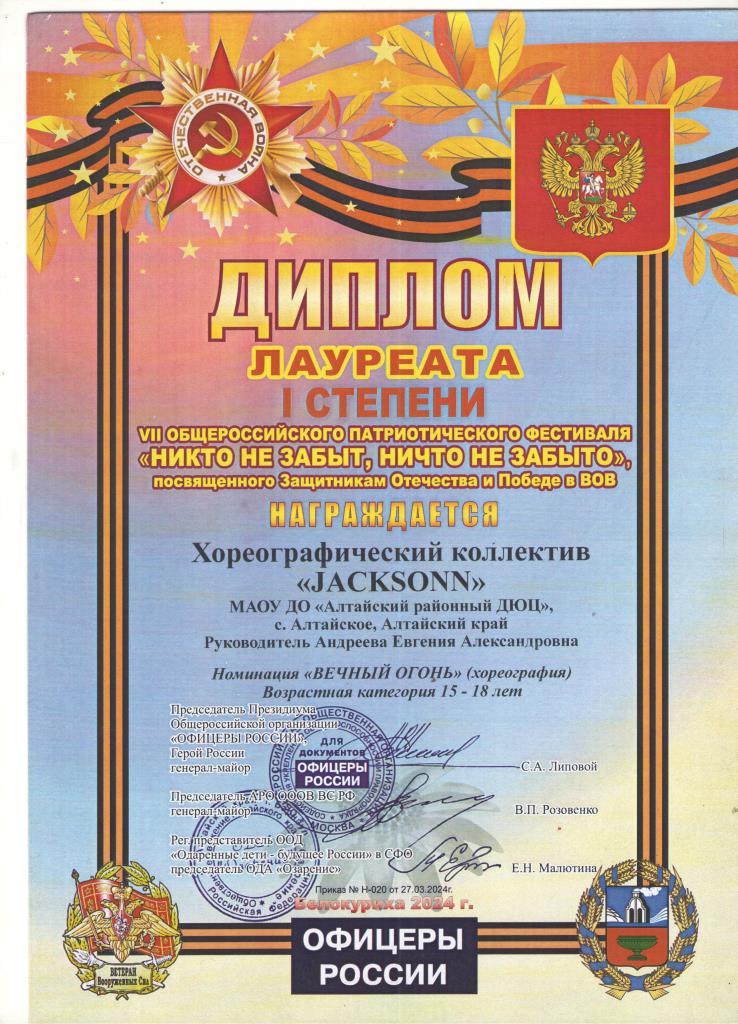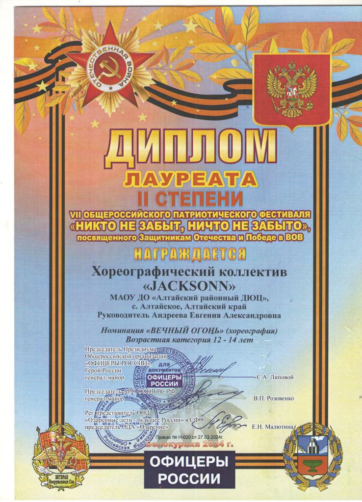 Дипломы 2023 — 2024 учебный год