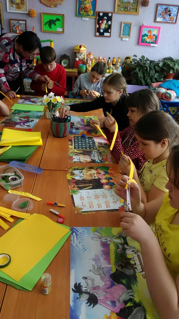 В детском объединении «Надежда» (руководитель Подвысоцкая Е.В.) 27 мартаребята решили на каникулах собрать букет из весенних цветов. Они пригласили мастерицу нашего района Нину Васильевну Казанцеву для мастер-класса из фоамирана «Одуванчик».