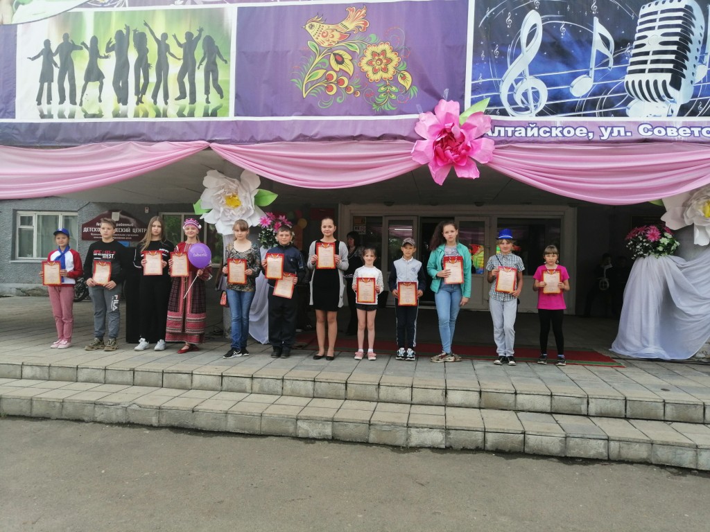 3 июня в 11.00 ч. в Алтайском районном детско – юношеском центре прошёл праздник, посвящённый Дню защиты детей. Всем – всем ребятам лучезарные улыбки и хорошее настроение дарили юные артисты театра песни и танца «Сюрприз». Они исполнили замечательные великолепные зажигательные номера: коллектив бального танца исполнили танец «Круиз 80 –х», средний ансамбль исполнили песню «Хорошее настроение»; трио Копылова Софья, Москвичёва Каролина, Вик Дарья исполнили песню «Россиночка – Россия», коллектив народного танца подарили всем участникам праздника танец «Вертёхи» и «Казачий танец». Впервые выступали солисты театра песни и танца «Сюрприз»: Табакаева Виктория, Танцура Юлия, Некрасов Евгений, Объедкова Дарья, Табакаева Любовь.