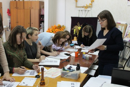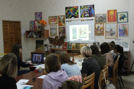 29.10.2019 в Детско-юношеском центре состоялся мастер-класс по иконописи на тему «Традиции иконописи». Мастер-класс провела педагог дополнительного образования Шелепова Д.К. На мастер-классе присутствовало 10 человек, обучающиеся художественной студии «Светлана». Ребята познакомились с историей иконописи, со станковой и монументальной живописью, техникой иконописи, познакомились с основными этапами работы над созданием иконы. Педагог рассказала о профессии иконописца, его основных задачах, что входит в работу иконописца. Поговорили о том, как создаются проекты по росписи храма, проекты иконостасов. Педагог познакомила обучающихся с принятыми надписаниями и сокращениями в иконе. Обучающиеся выполнили каллиграфические упражнения по написанию лигатур (соединений букв) русской вязью, так как при создании иконописного образа, завершая работу с иконой, мы подписываем икону.Ребятам очень понравился мастер – класс, они узнали много интересного и нового для себя. Педагог по окончанию мастер – класс услышала много слов благодарности от ребят.