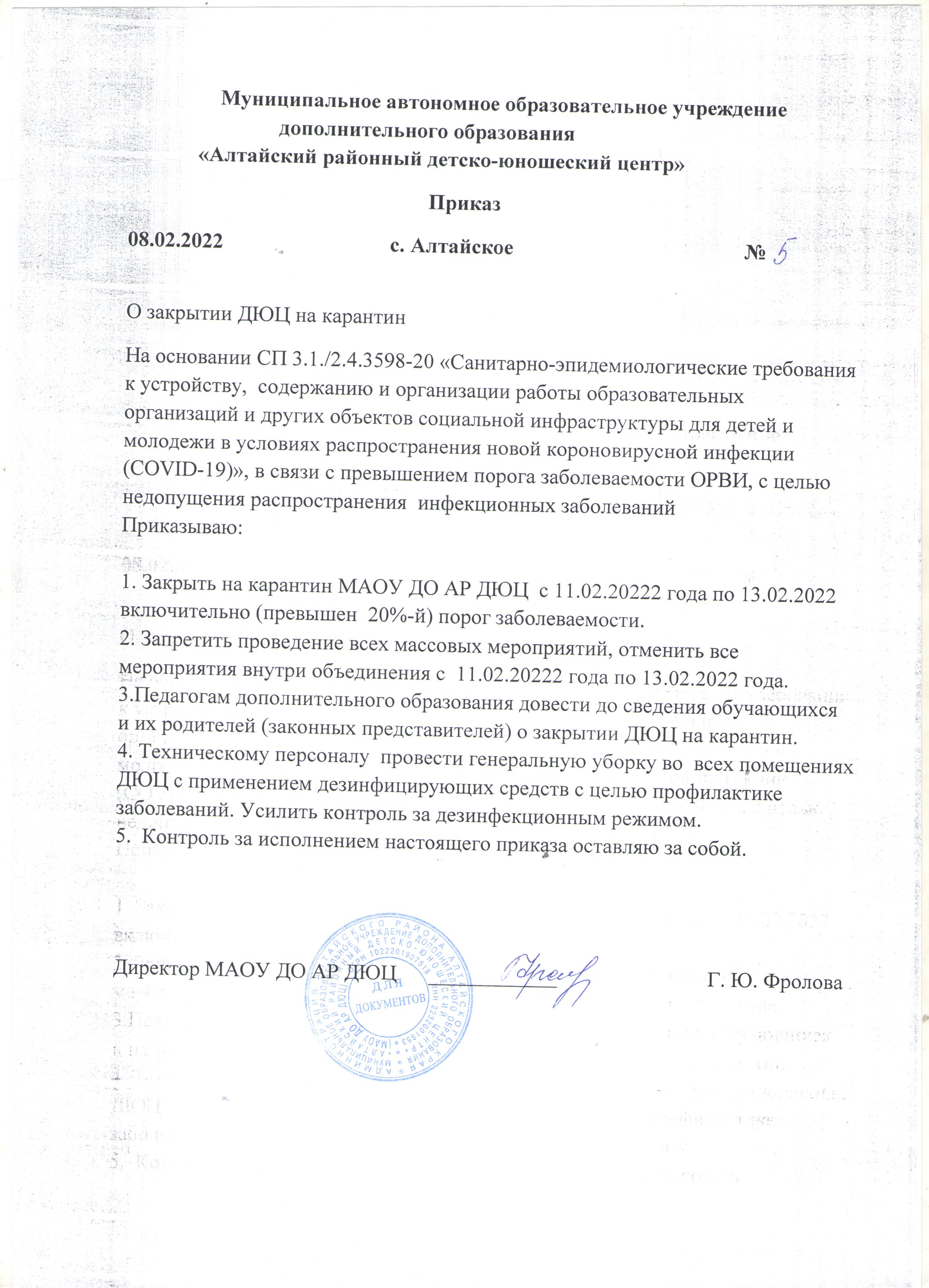 Приказ № 5 от 08.02.2022 г. МАОУ ДО АР ДЮЦ