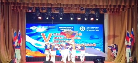 30 октября 2022 года обучающиеся театра танца «Сюрприз» - коллектива современного танца (руководители Андреева Евгения Александровна, Клиновицкая Надежда Сергеевна), приняли участие в открытии V Сибирского фестиваля детской патриотической песни «Офицеры России» в г. Белокуриха.