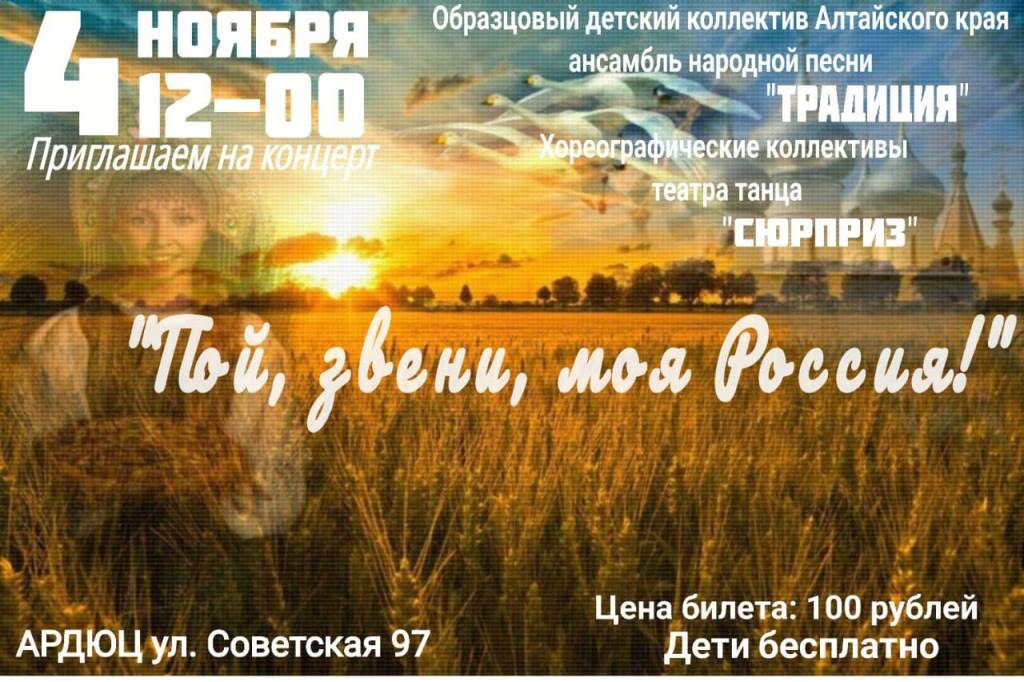 Приглашаем на концерт «Пой, звени, моя Россия» 4 ноября в 12.00 часов в ДЮЦ