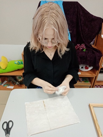 Гость художественной студии - Солнцева Татьяна Сергеевна, учитель истории и обществознания Макарьевской ООШ. Она провела мастер – класс «Шерстяная акварель».