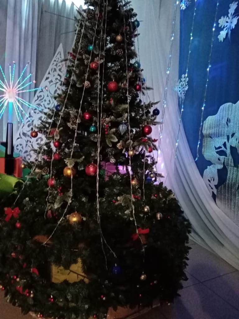 Дети на празднике сразу были вовлечены в увлекательное путешествие по поиску Бабы Ягаши, которая украла волшебную палитру, Снегурочка не могла оживить елку и Новый год не наступал. Дети вместе со сказочным патрулем и героями из мультфильмов помогали Снегурочке победить Бабу Ягашу и её злых помощников: игра «Часики», игра «Перетанцуй», игра «Море волнуется раз», игра «Снежный бом», игра «Волшебные шары». Много проказничала Баба Ягаша, но смелые дети победили, произнесли волшебные важные слова, и елочка ожила, яркими огоньками заиграла и начался праздник с Дедушкой Морозом и Снегурочкой с хороводами, песнями и новогодней дискотекой.