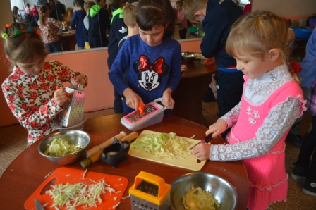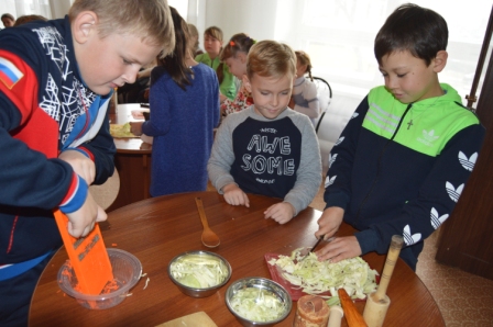 Традиционная «Капустная вечерка» в русском народном стиле была организована педагогами ДЮЦ Кисельман Александрой Юрьевной и Молодцовой Ольгой Михайловной в дни осенних школьных каникул 3 ноября. Такое мероприятие в дружном вокальном коллективе театра песни и танца «Сюрприз» и детском коллективе народной песни «Традиция» проводится не в первый раз и стало уже любимой формой проведения интересного досуга среди воспитанников детского центра. Вместе с детьми и родителями на празднике было около 40 человек.Ежегодно, на этом празднике дети много узнают о правилах рубки капусты, об истории возникновения праздника, о семейных традициях русского народа, делятся своими рецептами приготовления капусты, учатся правилам и нормам поведения в коллективе, что помогает ребятам лучше подружиться между собой, лучше узнать друг друга. Девочки на празднике демонстрировали свои кулинарные способности: аккуратность в рубке капусты, шинковке моркови.