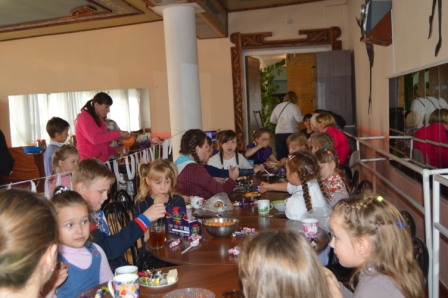 Парни помогали девочкам толочькапусту, солили ее, а еще проверяли свои силы в старинной русской забаве - перетягивании палки. После приготовления капусты, ребята играли в игры, танцевали, участвовали в веселых стартах, читали пословицы и поговорки о капусте, загадывали друг другу загадки. Кроме того, традиционным обрядом на этом осеннем празднике стал ритуал посвящения в ДЮЦевцы для тех ребят, которые пришли заниматься вокальным творчеством впервые. Ритуал для новичков проводили ребята, занимающиеся в коллективе более двух лет: ребятпарили веником, чтобы голос был всегда здоров, давали каждому витамины, и конечно же дети давали клятву юного музыканта. Праздник завершился дружным чаепитием, на котором воспитанники угощали друг друга сладостями и ели капустный салат, который сами приготовили.