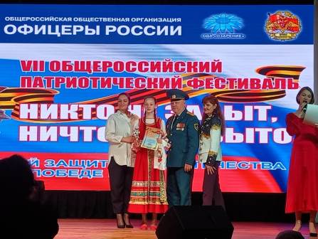 С 25 по 27 марта 2024 года в городе-курорте Белокуриха прошел Всероссийский патриотический фестиваль "Никто не забыт, ничто не забыто", посвящённый Защитникам Отечества и Победе в ВОВ. Около 1000 талантливых ребят со всего Сибирского округа приняли в нём участие в разных номинациях: художественное слово и театр, хореография , вокал, презентации военно-патриотических клубов, научно- исследовательские проекты и поисковая деятельность.