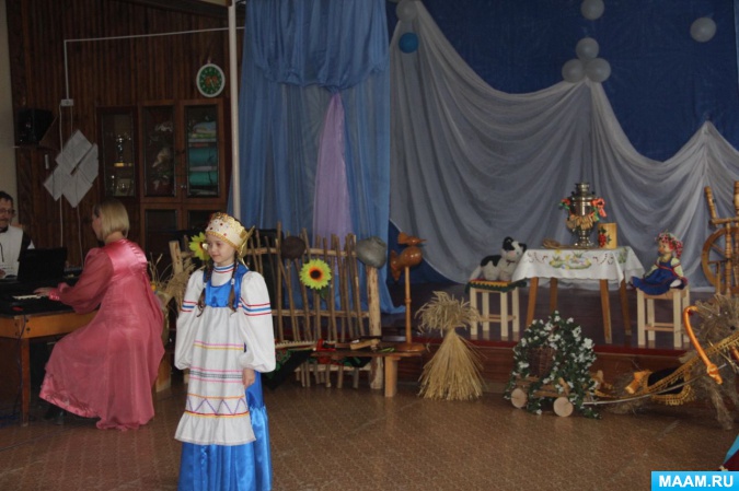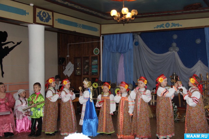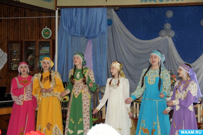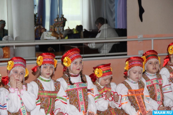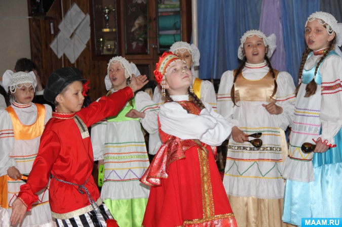 произведения в различной форме исполнения: ансамблевое пение, сольное исполнительство. Ребята показали свое умение исполнять произведения как под фонограмму, так и без музыкального сопровождения (a-capella). С большим мастерством воспитанники во время пения аккомпанировали себе на шумовых музыкальных инструментах, плясали, эмоционально и по - актерски выразительно исполняли свой концертный номер. В перерывах между концертными номерами, родители и дети играли в игры, разгадывали русские народные пословицы и поговорки и вместе исполняли известные русские народные песни. Итоговый концерт показал, что обучающиеся успешно справились с общеобразовательной программой и поэтому, по решению аттестационной комиссии все дети были переведены на следующий год обучения.
