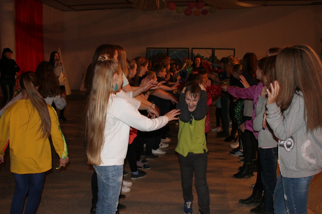 Зажигательная музыка, танцы, игры, посвящение в Дюцевцы, танцевальный флешмоб, игра «Ручеёк», «Пантомима», «Повтори за мной», «Скользящий платок», «Движущиеся обручи», «Передай шар» весь калейдоскоп эмоций, радости захватил ребят и атмосфера праздника не отпускала до конца мероприятия. Как здорово во время каникул вместе с педагогами театра песни и танца «Сюрприз» (Шварц Е.Л., Коршунова К.В., Бобровская Е.А., Саркисова Е.Ю.) веселиться, вместе играть и танцевать!