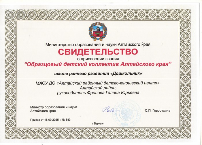 Образцовый детский коллектив Алтайского края Школа раннего развития «Дошкольник»