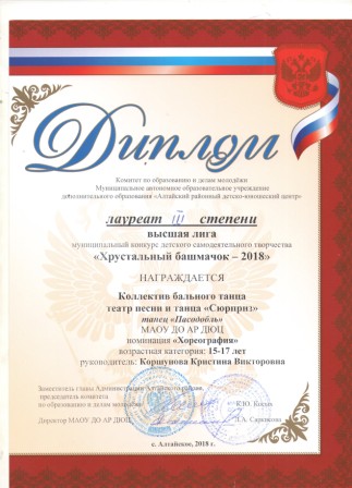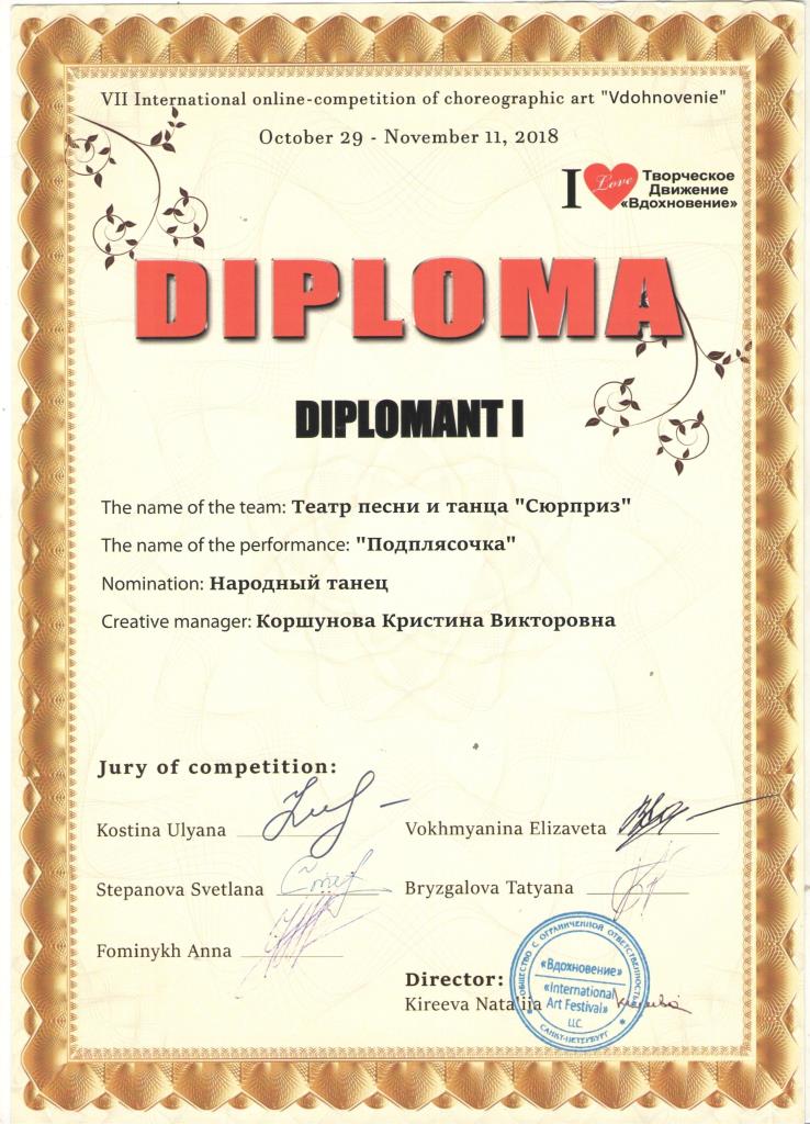 Диплом Лауреат I степени Диплом Лауреат II степени Диплом Лауреат III степени Праздник танца - 2018