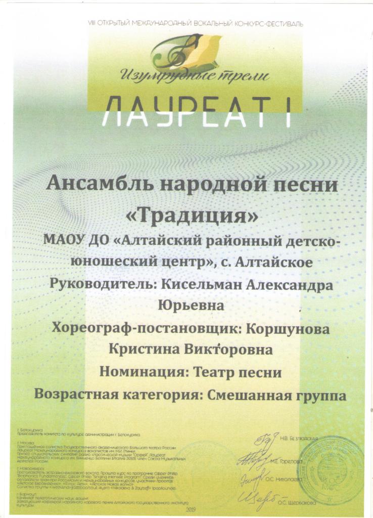 Синяя птица 001 ХБ 2019 001 ХБ 2021 Диплом 001 Д 3 степени Жемчужины сибири 2019 001