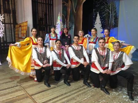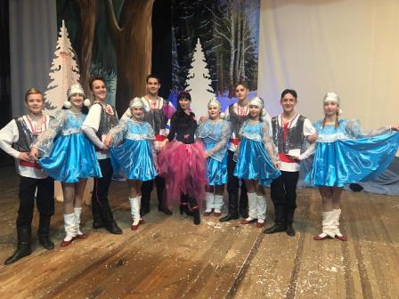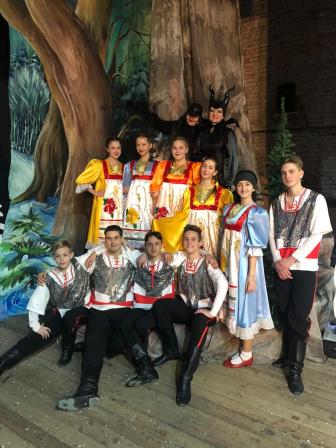 Коллектив «Народного танца», наряду с обучающимися других направлений театра «Сюрприз» и педагогами, принял участие в новом новогоднем спектакле «Ледяное сердце Малефисенты». Дети исполняли парную русскую народную пляску и участвовали в сцене «Темного леса», парни исполняли роли «Дубов».