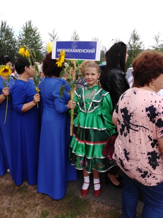 Коллектив народного танца театра песни и танца «Сюрприз» принимал участие в концертной программе, а также в праздничном шествии, где каждое село Алтайского района представлялось отдельно и таблички с названиями сельских советов несли участницы коллектива в красивых народных костюмах.